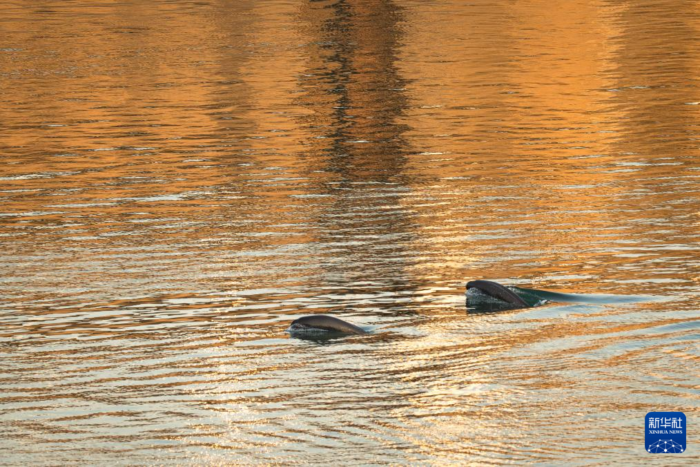湖北宜昌:夕阳下江豚踏浪
