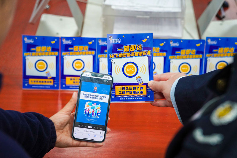 近日,隆昌市税务局创新推出的NFC手机碰一碰感应牌,引得前来办税服务厅办理业务的纳税人缴费人纷纷参与体验。