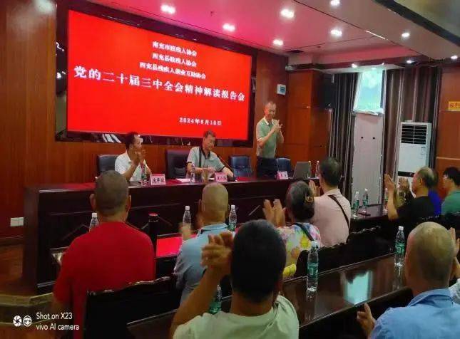 8月10日上午,为深入学习贯彻党的二十届三中全会精神,深刻领会、全面把握党的二十届三中全会精神实质,协会邀请了中共西充县委宣讲团成员、县委新闻报道组组长李青在西充县残联会议室,作了《将改革进行到底奋力谱写中国式现代化西充篇章--—党的二十届三中全会精神解读》,同时解读了《中共中央关于进一步全面深化改革、推进中国式现代化的决定》等内容,进一步引导大家学深悟透全会精神,切实做到入脑入心、真学真信。到会同志纷纷表示,聆听了报告,对全会精神的领悟更加透彻。这极大鼓舞着大家自信自强,在新时代勇敢前行、积极奋进,为实现自身价值和社会发展做出贡献。