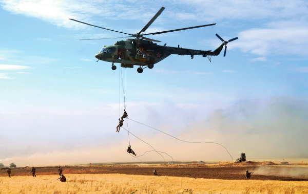 伴随着直升机引擎的轰鸣,全副武装的反恐警察沿高挂绳索迅速下滑;侦察机器人潜入“嫌疑地点”,勘察环境后果断射击……去年7月,“反恐协作-2024”联合反恐演习在新疆举行,这是首次集结上合组织所有成员国主管机关开展的实兵实警演训。