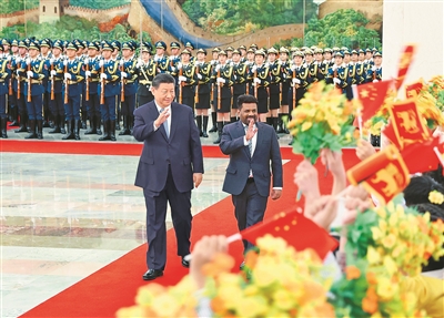 会谈前,习近平在人民大会堂北大厅为迪萨纳亚克举行欢迎仪式。