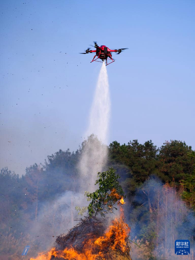 12月26日,在四川省成都市蒲江县,四川省森林消防总队特勤大队消防员在操控消防无人机进行灭火演练。