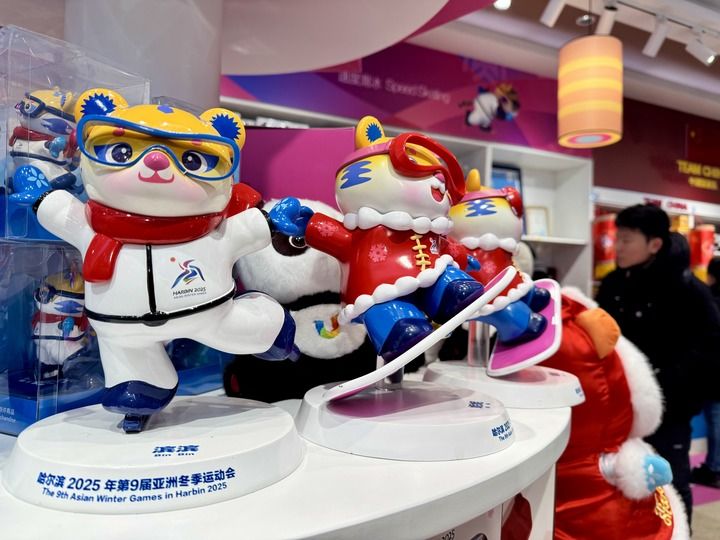 3秒就能加热的围巾、温暖的毛绒玩偶、吉祥物“滨滨”“妮妮”手插抱枕毯……春节期间,位于哈尔滨市中央大街的亚冬会官方特许商品零售店,多款好看又保暖的新产品受到游客欢迎。