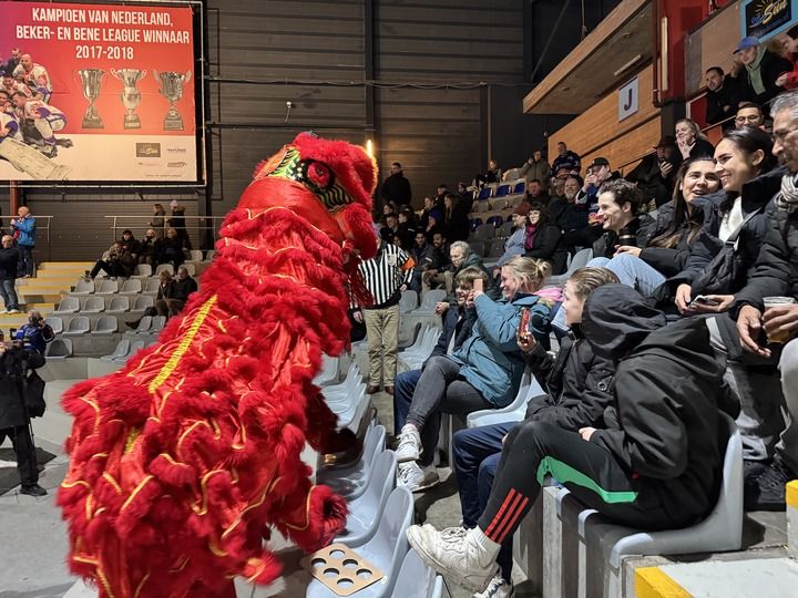 春节前夕,荷兰海牙德厄伊特霍夫体育中心一场职业冰球比赛中场休息期间,一红一橙两只活灵活现的“狮子”在锣鼓声中闪亮登场,参加表演的中荷两国少年还将蛇年吉祥物抛向看台,为当地观众带来融合冬季运动与春节文化的特别体验。