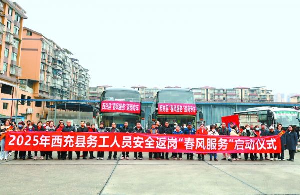 随着春节假期的结束,农民工返岗复工迎来了高峰期。近日,2025年西充县务工人员安全返岗“春风服务”启动仪式在该县客运中心举行,助力农民工安全、便捷、有序返岗。