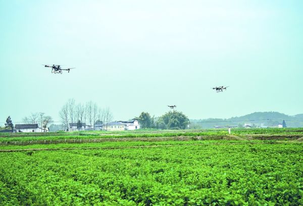 龙云寺村集体经济组织粮食种植基地,无人机参与管护。