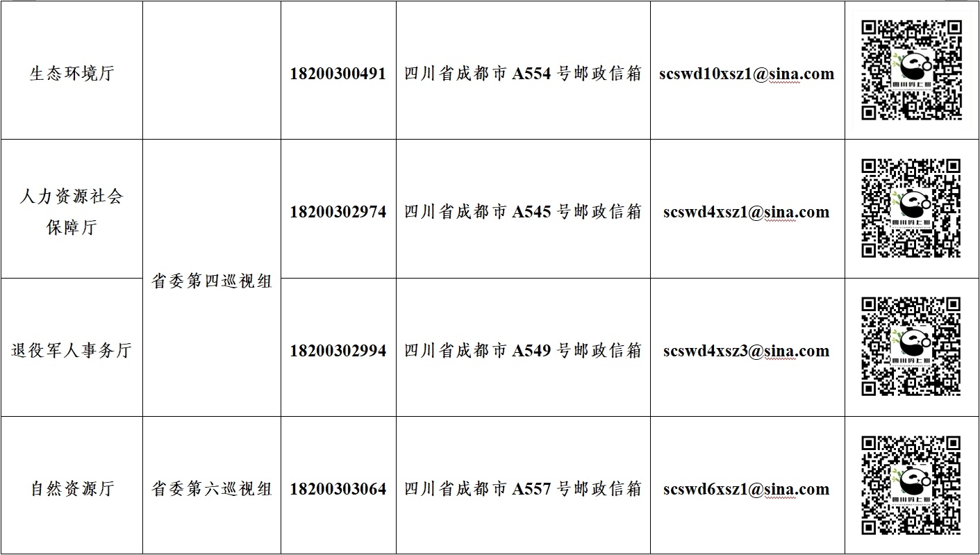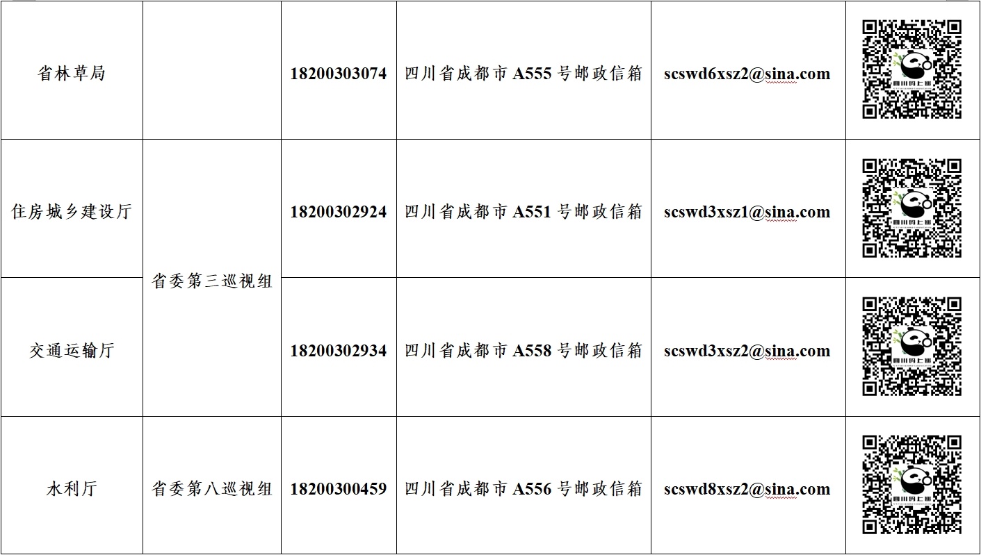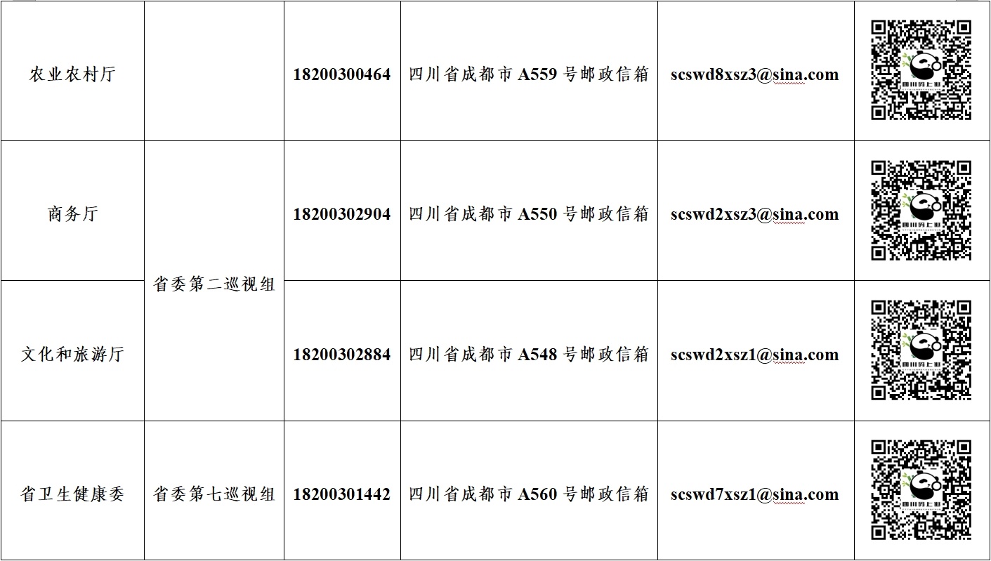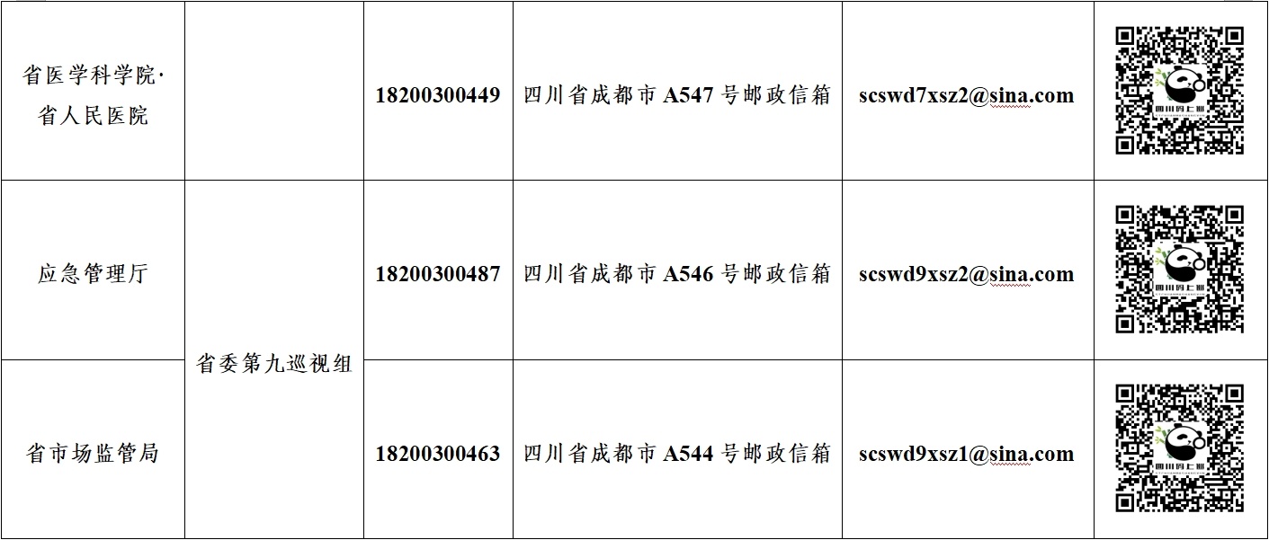巡视期间,各省委巡视组设置了值班电话、邮政信箱、电子邮箱和“四川码上巡”二维码。巡视组主要受理反映被巡视党组织领导班子及其成员和下一级党组织领导班子主要负责人,以及重点岗位人员问题的来信、来电、来访,重点是关于违反政治纪律、组织纪律、廉洁纪律、群众纪律、工作纪律和生活纪律以及巡视整改等方面的问题反映。对其他不属于巡视受理范围的信访问题,将按规定由被巡视单位和有关部门认真处理。