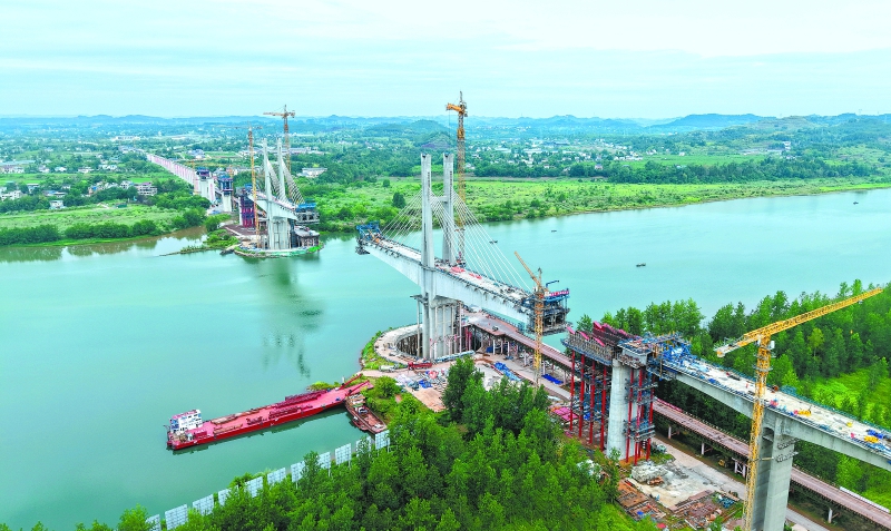 建设中的成达万高铁南充嘉陵江特大桥。南充市融媒体中心记者余中华摄