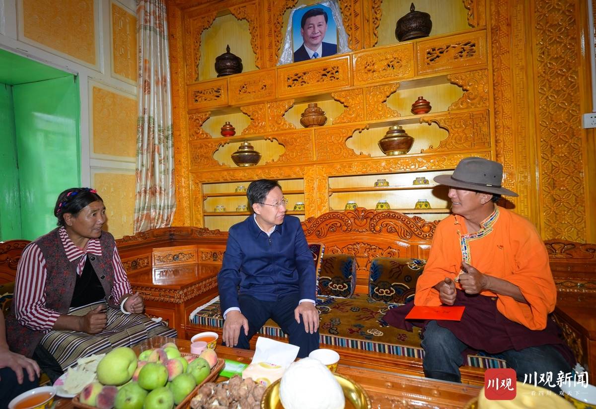 9月16日,省委书记、省人大常委会主任王晓晖到得荣县白松镇日当村调研,在脱贫户曲错家中,与一家人促膝交谈,关切询问家庭收入、医疗保障、子女上学等情况。