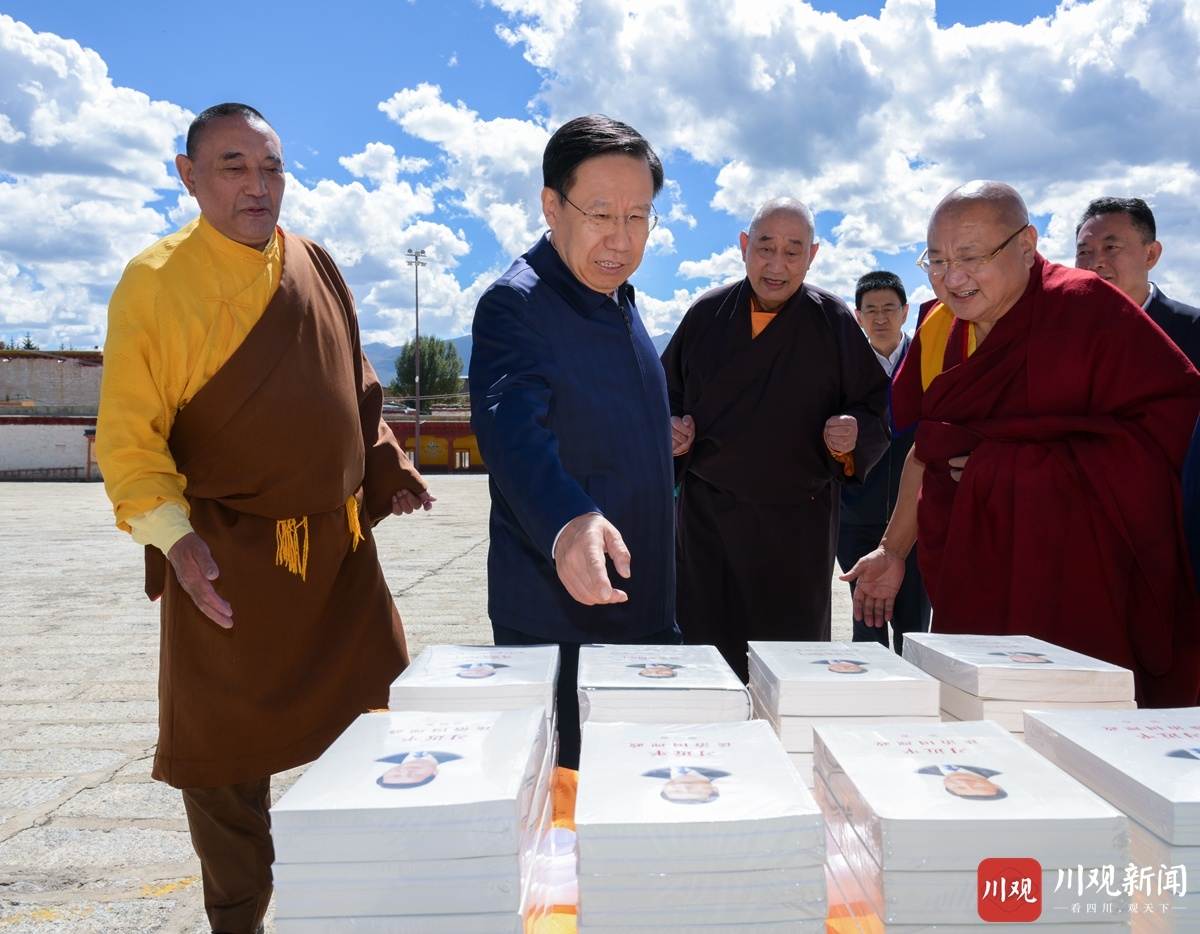 9月15日,省委书记、省人大常委会主任王晓晖到位于理塘县的长青春科尔寺调研,向寺庙赠送《习近平谈治国理政》。