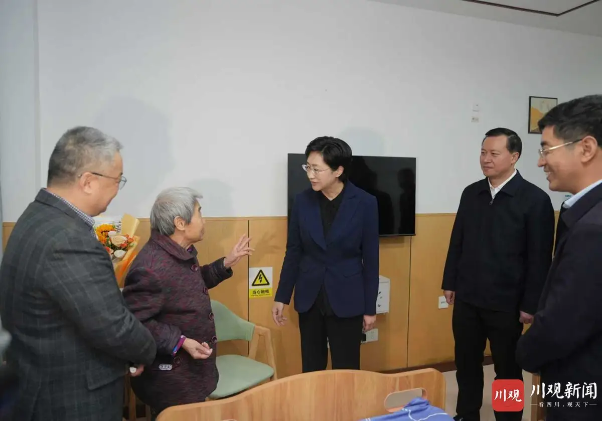 10月29日,省委副书记、省长施小琳在广安市前锋区老年养护院,调研基层公建民营综合养老机构建设运营、社会化养老服务供给情况,看望慰问老年人。