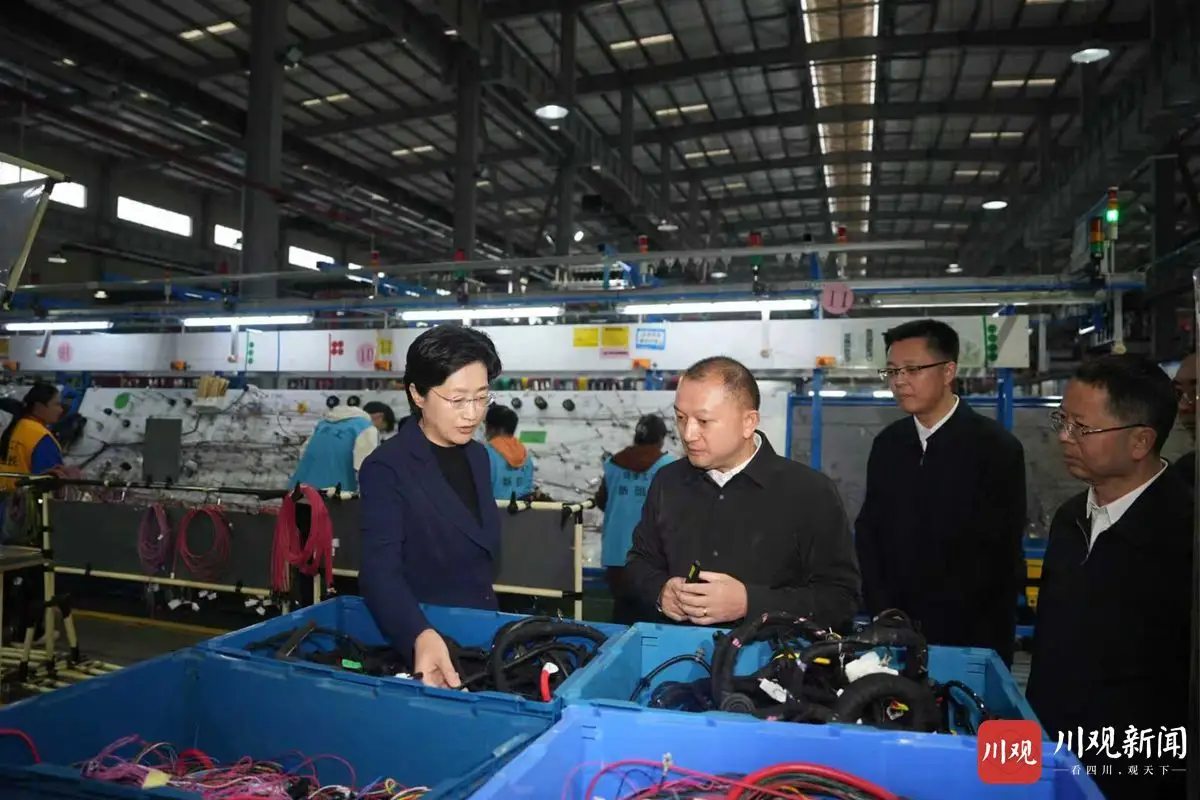10月30日,省委副书记、省长施小琳在广安经开区比亚迪线束生产车间,调研“智改数转”助推企业提质增效情况。