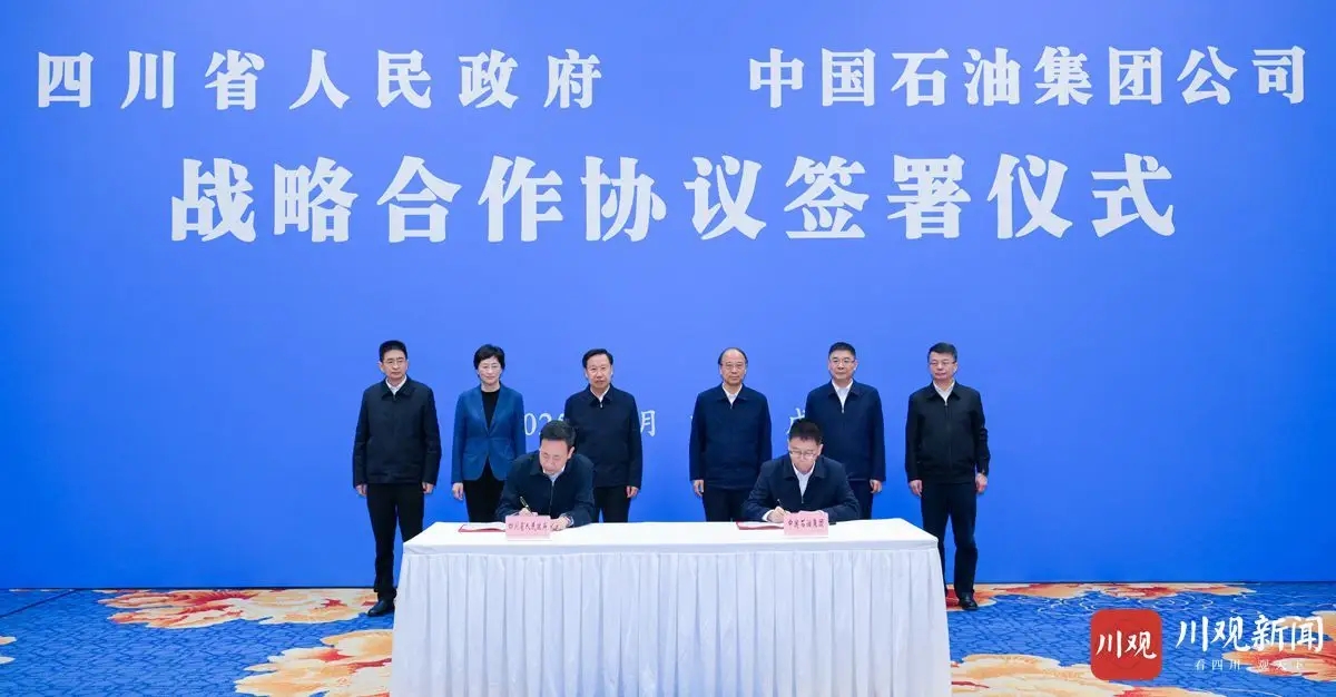 签署仪式上,副省长任京东与中国石油集团副总经理张道伟,分别代表双方签署《四川省人民政府 中国石油天然气集团有限公司战略合作协议》。根据协议,双方将立足推进川渝千亿方国家油气生产基地建设,围绕油气资源勘探开发、石化产业绿色低碳转型发展、能源基础设施建设、油气科技创新平台打造等领域开展务实合作,携手构建服务国家战略、提升企业效益、推动地方发展的能源开发新格局。