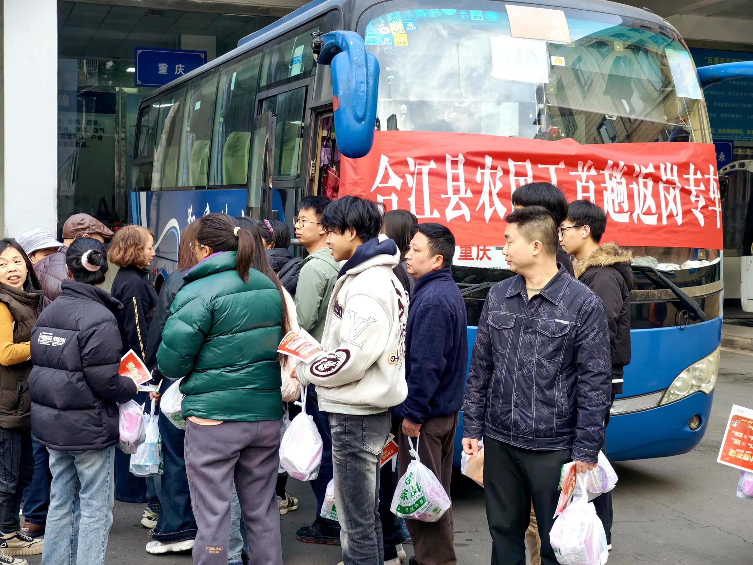 合江首趟免费返岗复工专车启程(合江县委宣传部供图)