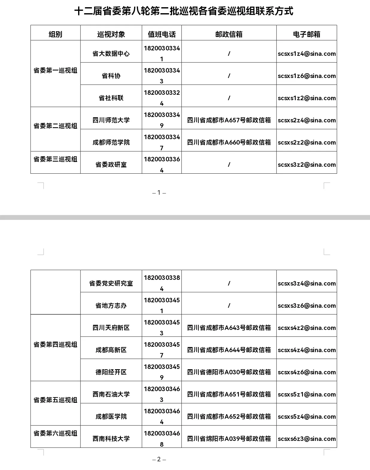 十二届省委第八轮巡视完成第二批进驻 各省委巡视组联系方式公布