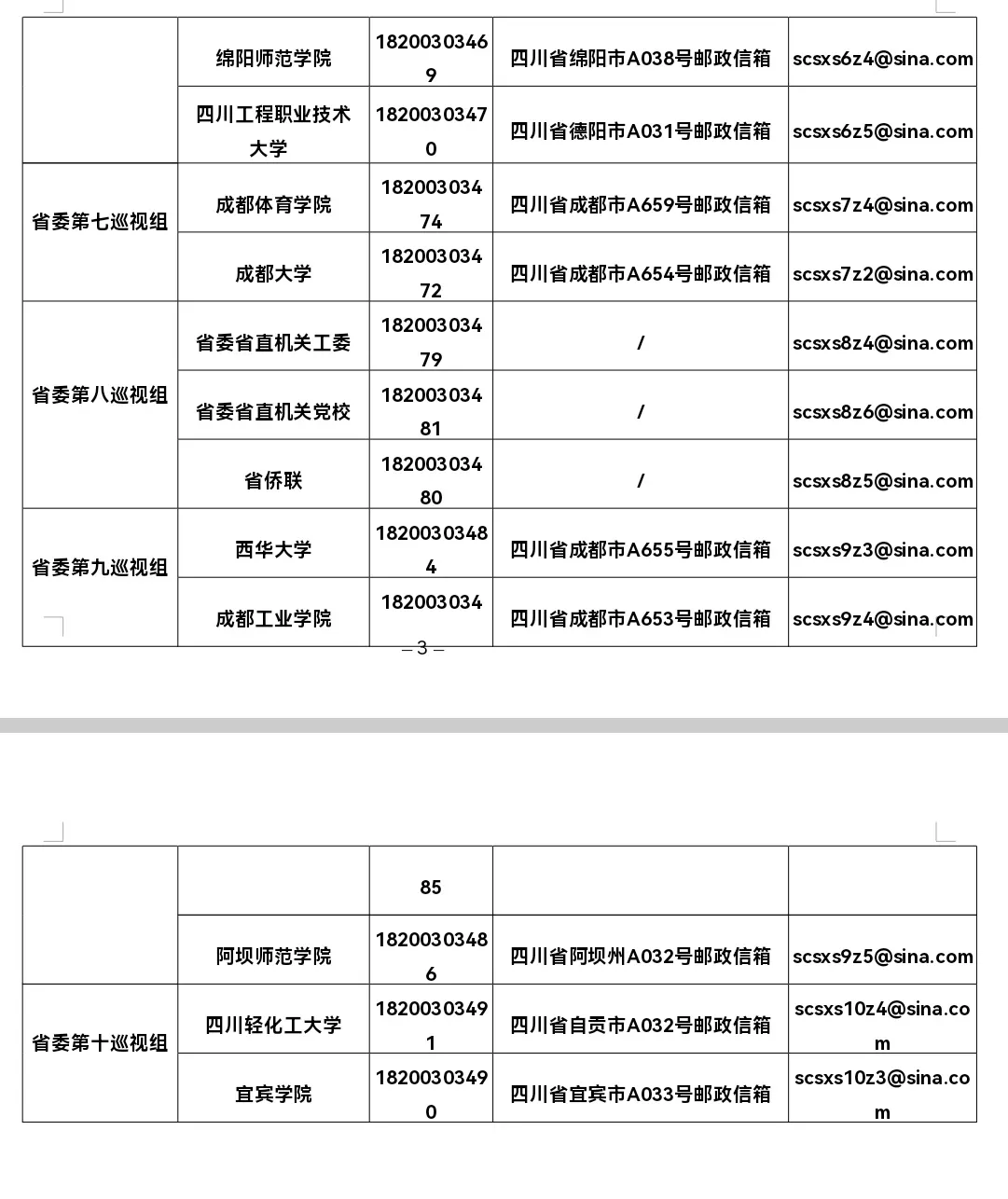 巡视期间,各省委巡视组设置了值班电话、邮政信箱、电子邮箱和“四川码上巡”二维码。省委巡视组主要受理反映被巡视党组织领导班子及其成员和下一级党组织领导班子主要负责人,以及重点岗位人员问题的来信、来电、来访,重点是关于违反政治纪律、组织纪律、廉洁纪律、群众纪律、工作纪律和生活纪律以及巡视整改等方面的问题反映。对其他不属于巡视受理范围的信访问题,将按规定由被巡视单位和有关部门认真处理。