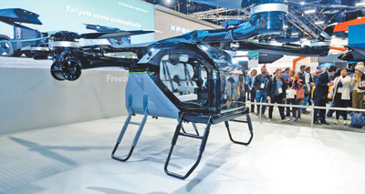 图为展出的小鹏汇天分体式飞行汽车“陆地航母”。 |