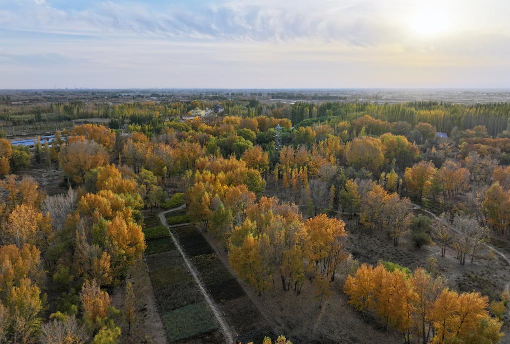 2024年10月17日拍摄的内蒙古巴彦淖尔市临河区国营新华林场(无人机照片)。新华社记者李云平 摄