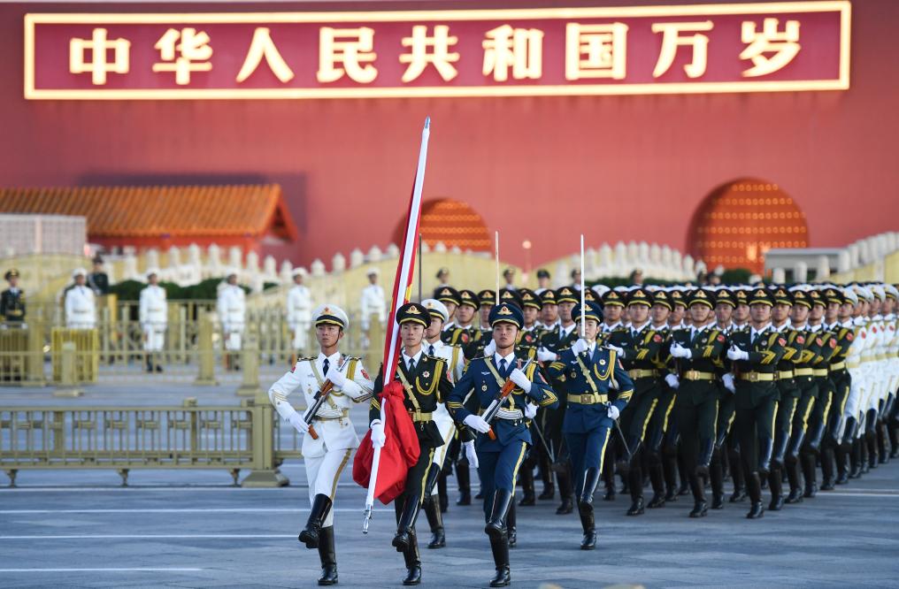 2024年10月1日清晨,隆重的升国旗仪式在北京天安门广场举行,庆祝中华人民共和国成立75周年。 新华社记者 陈钟昊 摄