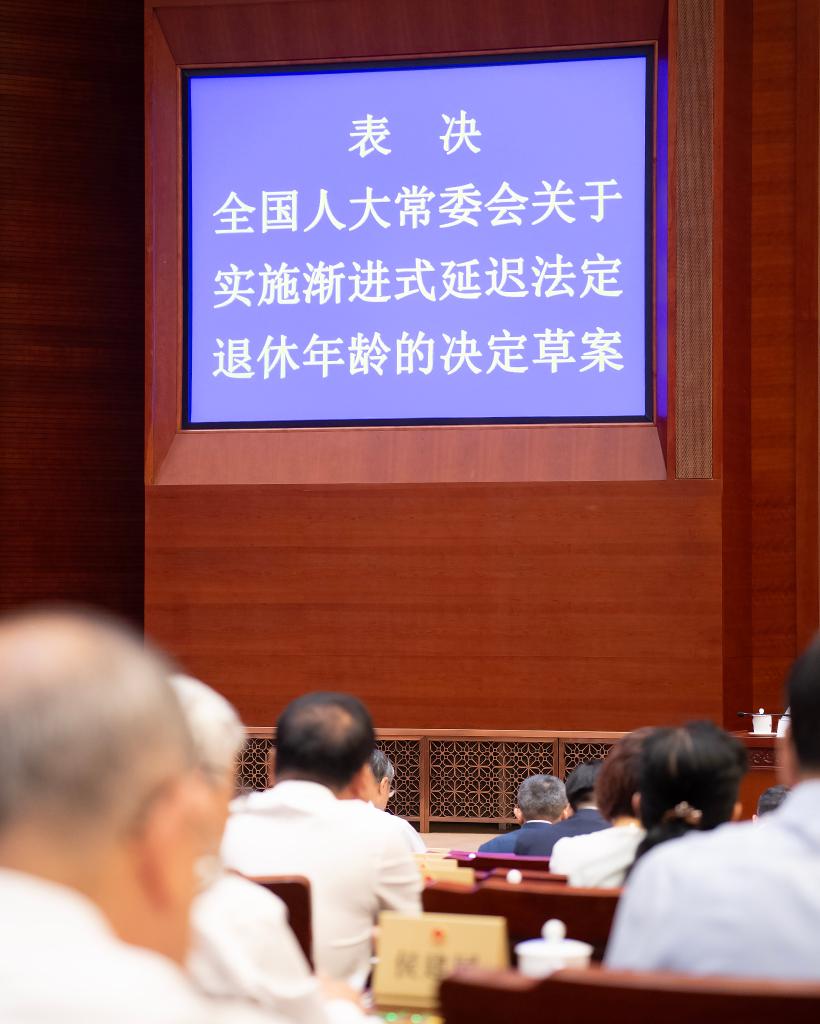 2024年9月13日上午,十四届全国人大常委会第十一次会议在北京人民大会堂闭幕。会议表决通过了全国人大常委会关于实施渐进式延迟法定退休年龄的决定。 新华社记者 李涛 摄