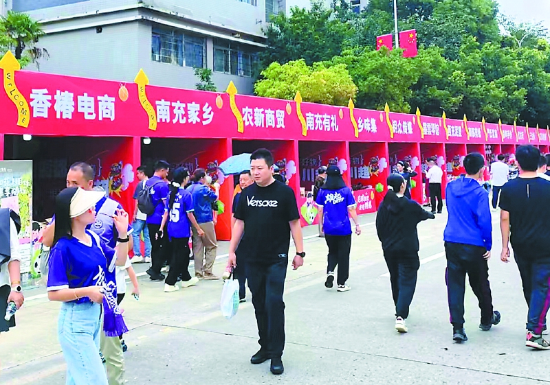 在川超川东赛区南充赛场外,特色展销吸引了不少群众参观购买。南充市融媒体中心记者乐校臣摄