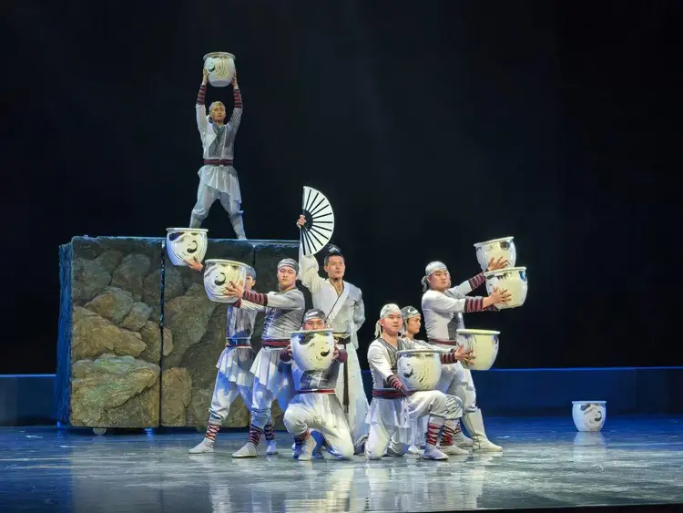 一个多小时的演出高潮不断。展现力量与技巧的节目《蹬技》同样令人叫绝,只见演员用双脚蹬起各种道具,动作娴熟、节奏精准,尽显扎实功底。而高难度的“单手顶”更是将杂技的秀美与震撼演绎得淋漓尽致,演员单手撑地,身体倒立,姿态优美且稳定,赢得阵阵喝彩。