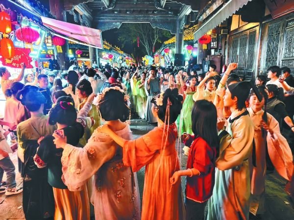清明假期前,以“袍行阆苑·梦回千年”为主题的国风盛宴——2026阆中汉服纪线上活动率先拉开帷幕。4月4日,首个“国风快闪”线下活动启动。为吸引游客,阆中古城推出系列惠民政策:穿汉服的游客可免费游览古城10余个核心景点;合作酒店提供汉服同袍住宿优惠;官方平台同步上线限量门票抢购服务。小长假期间,身穿汉服游古城,成为一道美丽的风景。