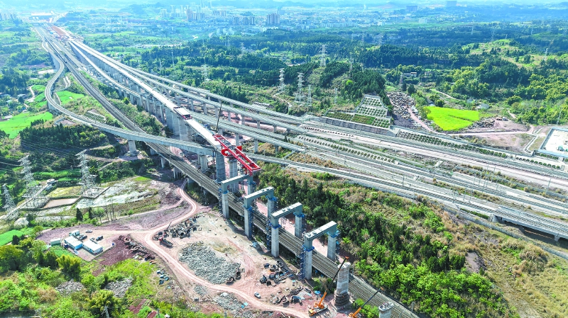 塔吊高耸,机械轰鸣,运输混凝土、钢筋等材料的车辆穿梭不息——这是成达万高铁控制性工程南充嘉陵江特大桥施工现场的繁忙景象。