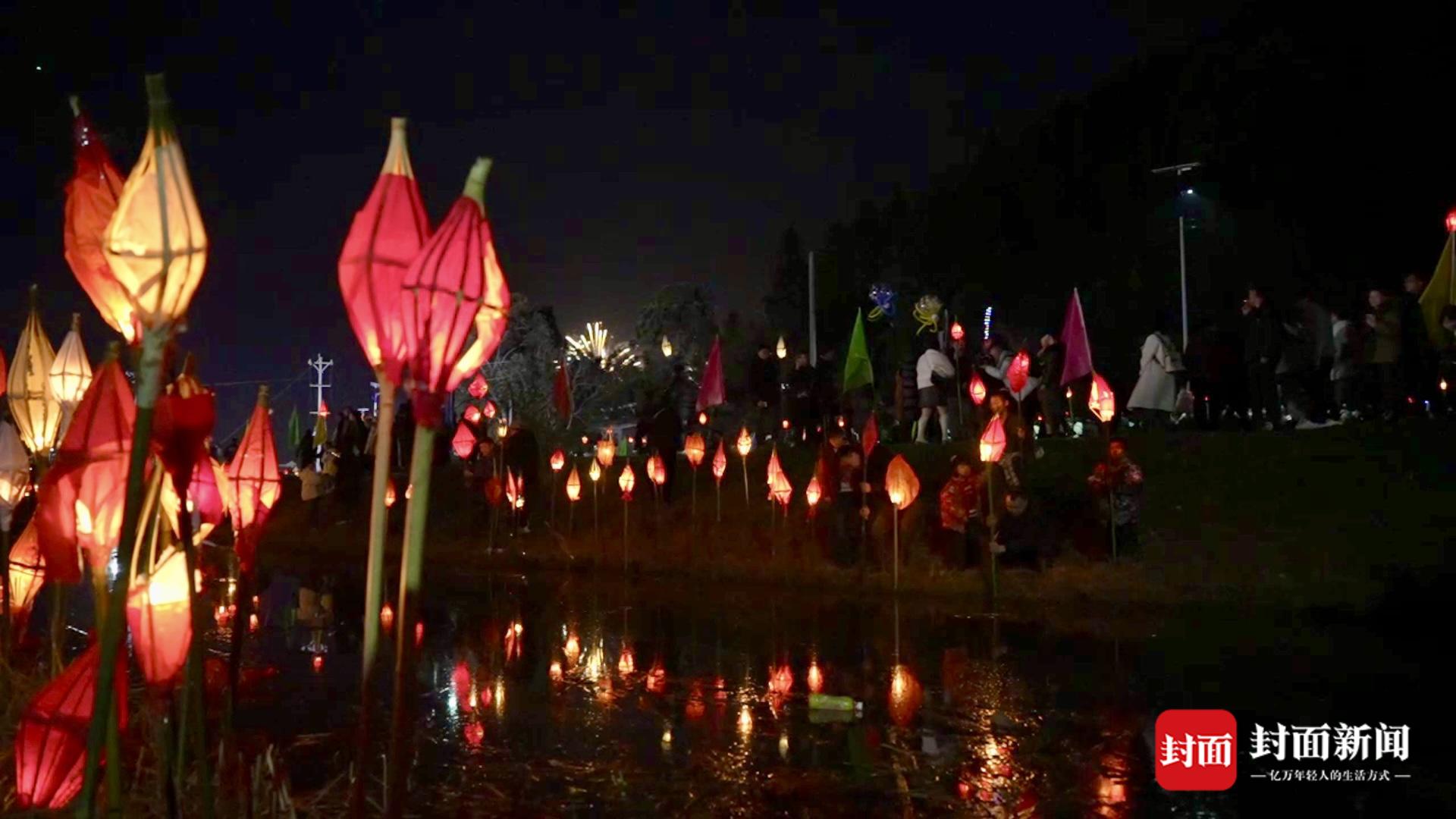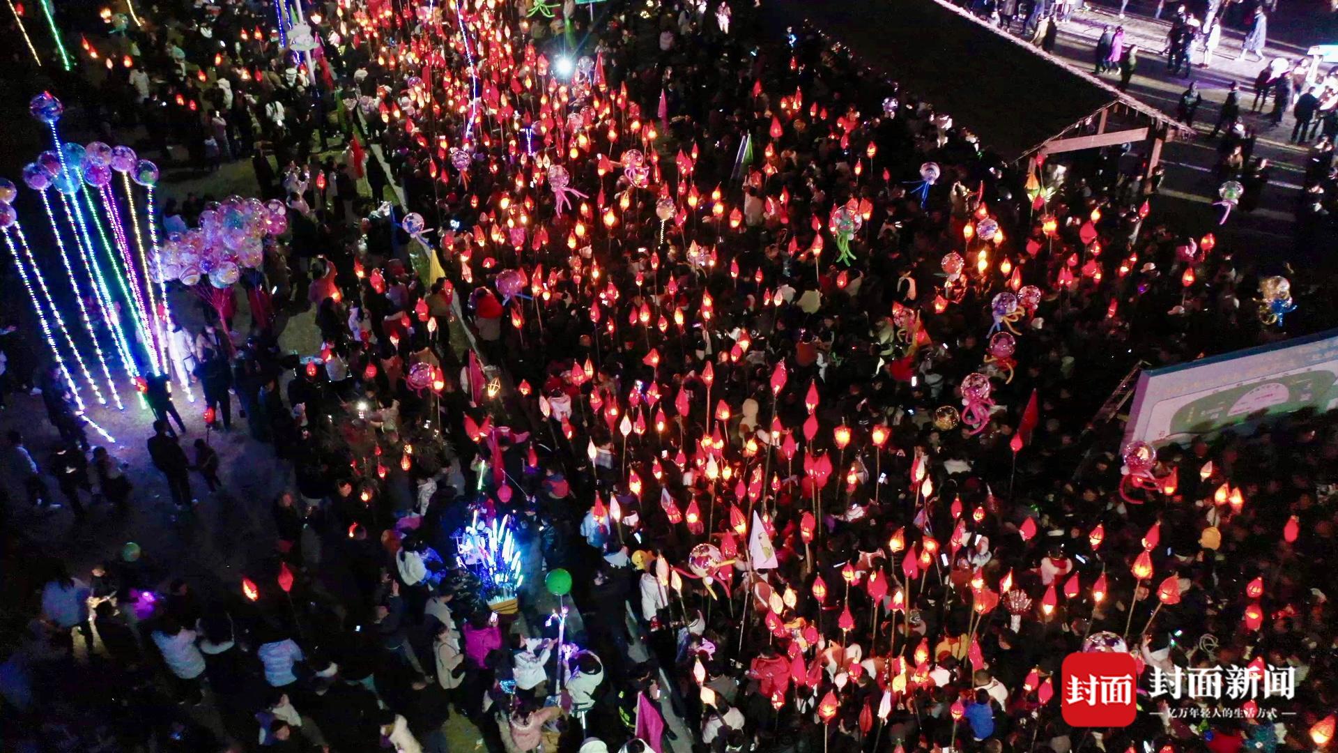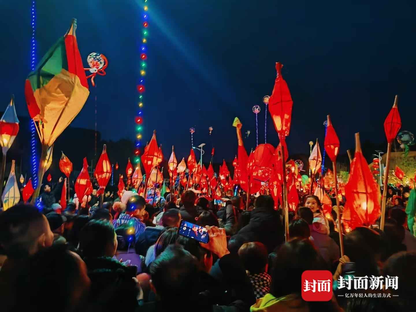 大人小孩成群结队举着蛴蟆灯,唱着“送蛴蟆”歌谣,当地人将象征瘟神的“蛴蟆灯”,送至河边、路边烧尽,祈求来年健康平安,五谷丰登。