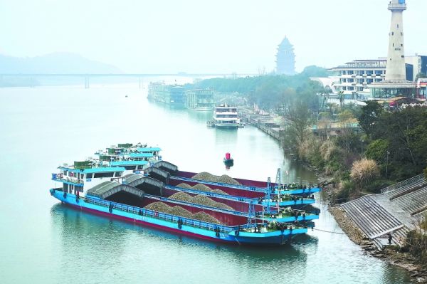 蛇年一开工,嘉陵江水运日益繁忙。2月18日,记者在嘉陵江南充城区段看见,白塔嘉陵江大桥上游处,两艘满载砂石等货物的大型货船缓缓航行;在下中坝嘉陵江大桥下游,有四艘大型货船停靠在岸边等待通行(如图)。 “这些货船正在等待过闸,通往嘉陵江上游。当水位达到预定通行高度时,方可通行。”南充市航务管理局相关负责人介绍,春节假期后,嘉陵江水运日趋繁忙。为保障枯水期水运安全,给船只提供良好过闸环境,该局积极协调辖区航电枢纽加快过闸放行速度,确保嘉陵江南充段水运通畅。 南充市融媒体中心记者 余中华 摄