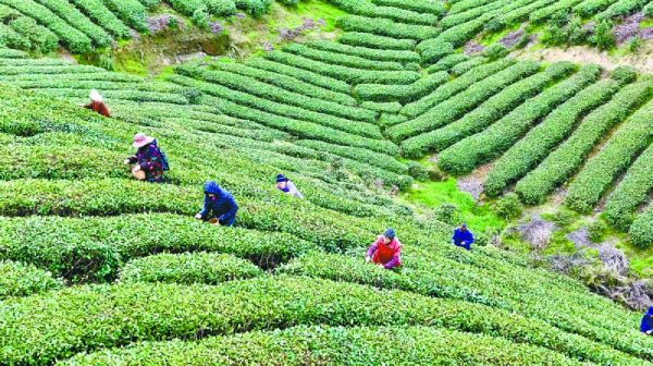 南充新闻网讯(杨光 南充市融媒体中心记者 梁洪源 文/图)3月21日上午,记者乘车前往营山县明德乡明渠村,在穿过陈大寨山上的松树林后,一大片绿意盎然的茶园立即映入眼帘。目光所及,农户们头戴遮阳帽,手拿竹篓,熟练地采摘着茶树的嫩芽(如图),动作行云流水,与层层叠叠、连绵起伏的墨绿色茶垄构成一幅美丽的采茶图。
