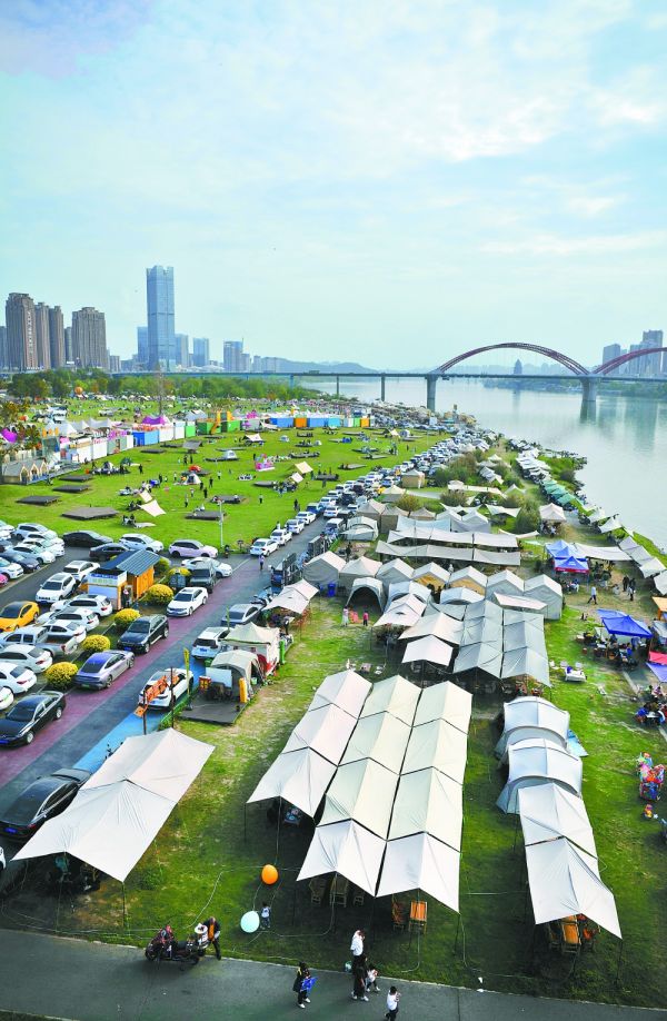 虽然热,但风很柔和,近来在缤纷水岸湿地公园、黄金江岸湿地公园、广南高速南充北收费站外等处草坪上,早早就有市民坐在天幕或是树荫下惬意地享受户外春光。