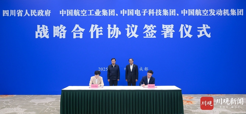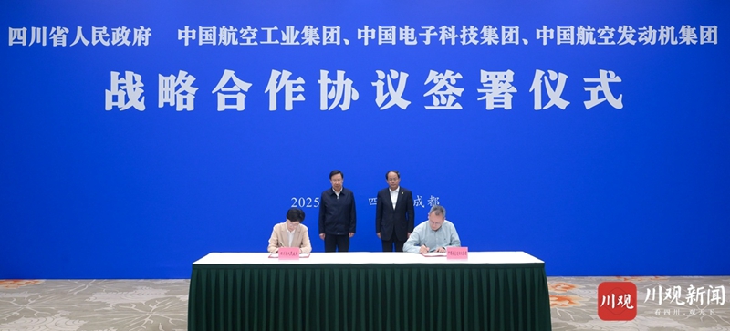 4月21日,四川省人民政府与中国航空工业集团、中国电子科技集团、中国航空发动机集团在成都分别签署战略合作协议。省委书记、省人大常委会主任王晓晖,省委副书记、省长施小琳,国家国防科工局党组书记、局长单忠德出席签署仪式。