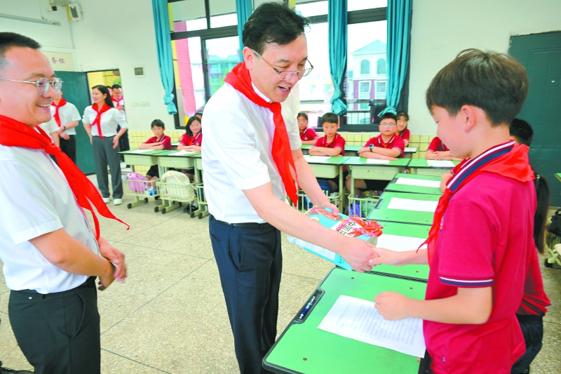 在学校六年级一班教室外,少先队员为张冬云系上鲜艳的红领巾。张冬云走进教室,观摩了班级正在举行的感恩主题班会,并现场聆听了学生们朗诵感恩信。张冬云强调,广大少年儿童要将感恩之心转化为实际行动,把个人理想融入祖国发展大局,从小树立为民族复兴而奋斗的远大志向。要自觉涵养高尚品德,从身边小事做起,践行尊重关爱、互助奉献的文明风尚。要在学习与锻炼中磨砺意志、增长才干,努力成为德智体美劳全面发展的社会主义建设者和接班人。要在日常学习生活中以实际行动回馈社会关爱,以成长进步回报各方关怀,让童年在感恩奋进中绽放绚丽光彩。