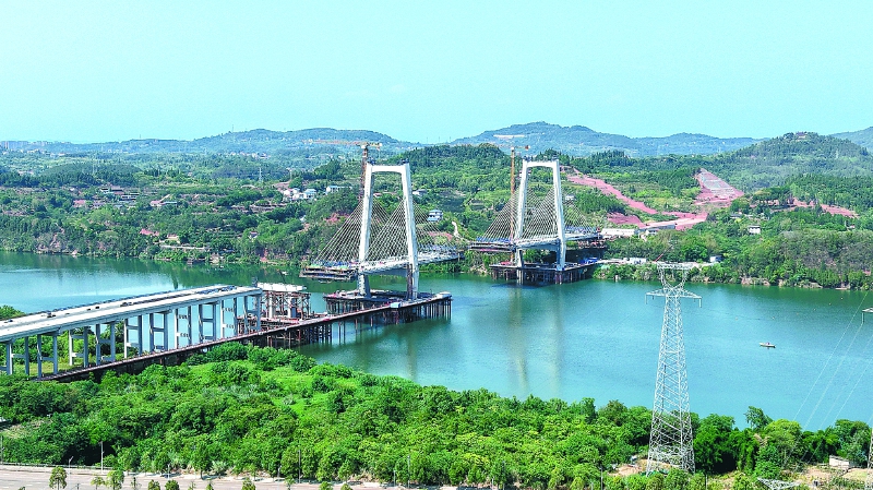 建设中的成南高速公路扩容工程(南充段)控制性工程嘉陵江特大桥。