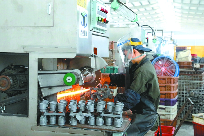 在四川浙南智造科技有限公司精密铸造车间,工人们熟练地操控机器,对产品进行精细加工。