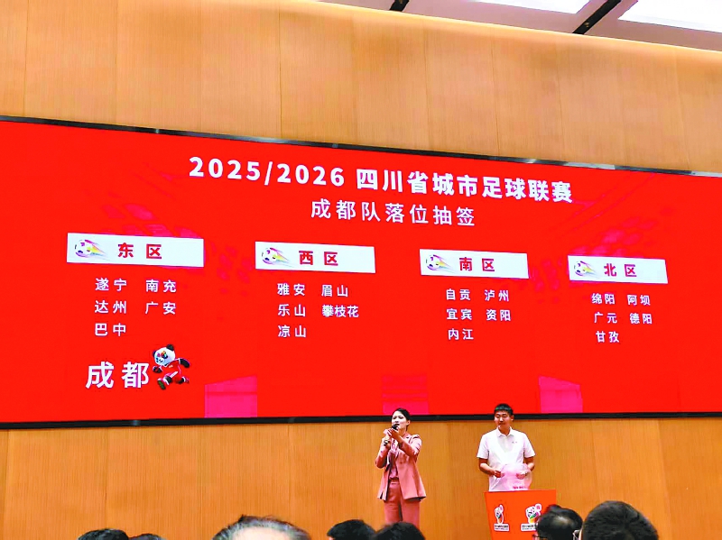 本报讯(南充市融媒体中心记者郑钦豪文/图)9月5日,2025/ 2026四川省城市足球联赛(简称“川超”)赛前发布会在成都举行。发布会现场,成都队通过抽签仪式“落户”南充队所在的东区,并确定“川超”揭幕战于9月20日举行,由成都队对阵遂宁队。而南充队的“川超”首战,则将对阵同在东区的巴中队。