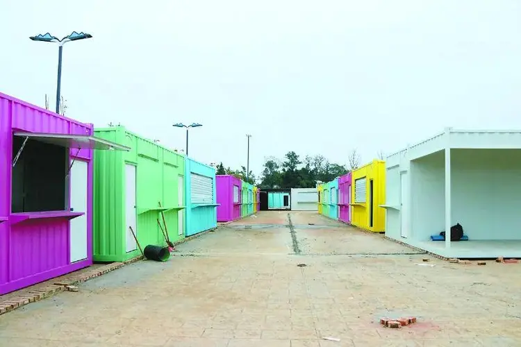 为进一步规范校园周边经营秩序、全面提升消费服务品质、充分激发区域商圈活力,顺庆区搬罾街道大学城“花样食光街”项目建设已进入最后冲刺阶段。目前,项目现场集装箱商铺及摊位主体结构、配套基础设施均已全面落地,工人们正加紧进行门窗安装等收尾工程,为大学城学生及市民游客提供一站式高品质消费体验。