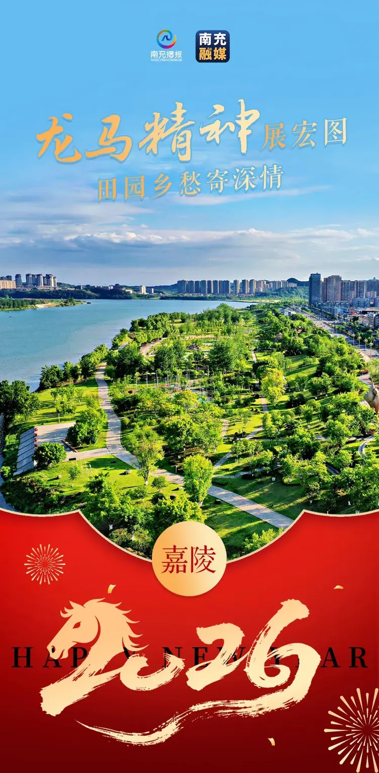 宜居嘉陵,龙马精神迎新春!这里是 “中国桑茶之乡”,凤垭山的生态画卷徐徐展开,七宝寺的晨钟暮鼓穿越千年。新春期间,田园西河的乡村旅游正热闹,摘鲜果、品农家菜、赏民俗表演,体验最纯粹的年味。祝您阖家幸福,精神抖擞,日子过得红红火火!