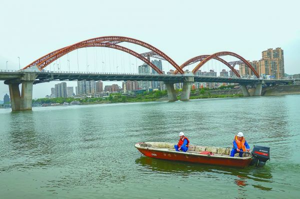 高坪区农业农村和水务局护渔员在嘉陵江巡逻。