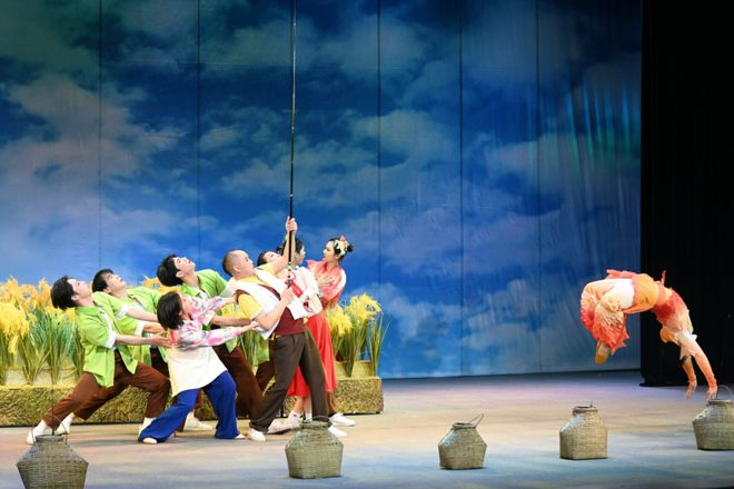 剧目以乡村振兴为时代底色,讲述了川北灯戏传承人走进乡村,巧设稻田钓鱼比赛、割稻研学游,带动乡村旅游发展的诙谐故事,将传统灯戏“插科打诨”的民间特色,与现代乡村振兴的时代主题巧妙结合,勾勒出一幅新时代乡村的幸福画卷。