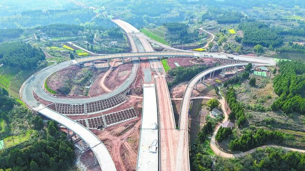 成南高速公路扩容工程(南充段)经开区互通建设现场(摄于3 月21 日)