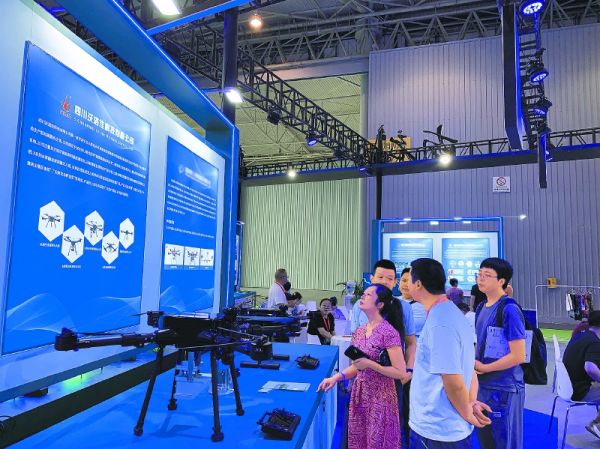 四川沃洛佳科技有限公司研发的水表面流速测量无人机亮相第八届成都智博会(资料图)。南充市融媒体中心记者 谯灵敏 摄