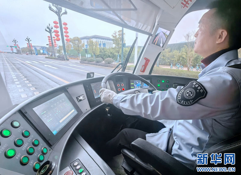 智轨师傅春运期间全力保障运行。新华网发(曹鹏 摄)