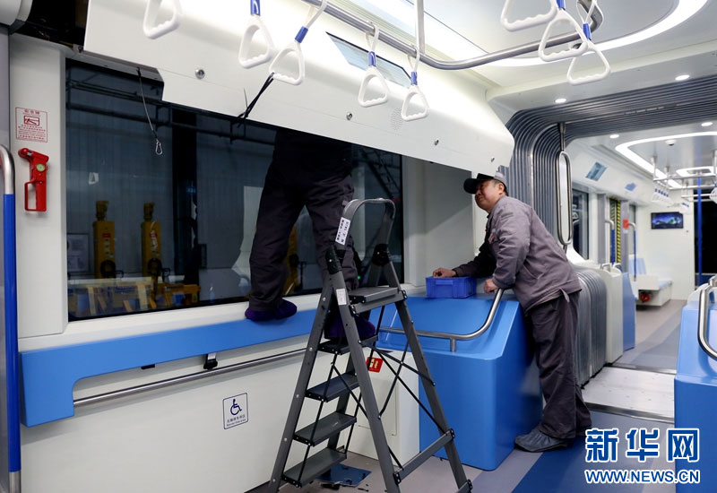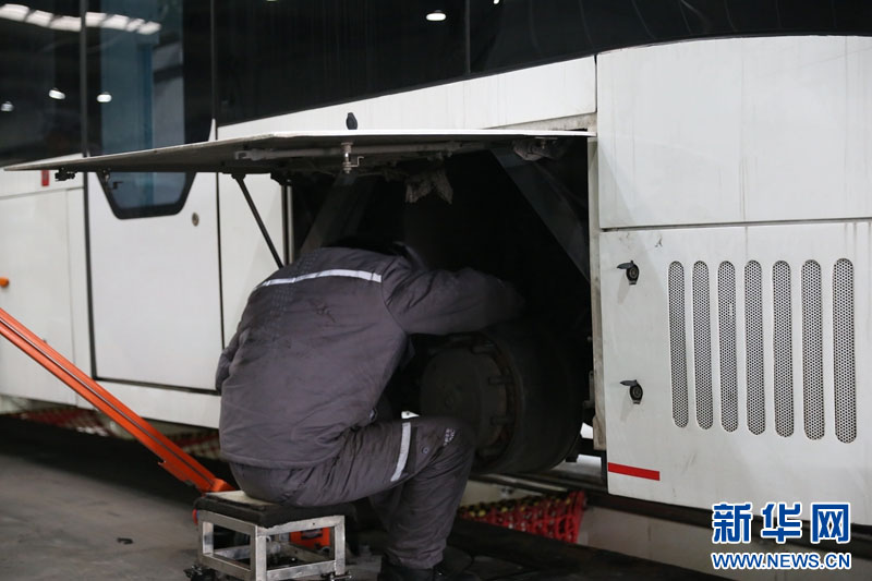 工作人员正在检修车辆。新华网发(曹鹏 摄)