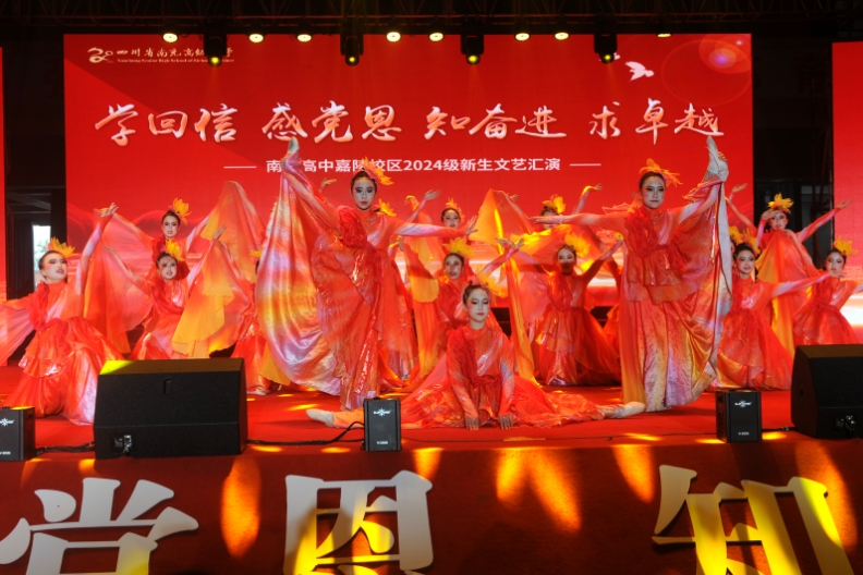 南充高中各校区每年都会举行新生文艺汇演,是学校开展素质教育的重要组成部分,已成为学校一项传统文化品牌活动。当天,嘉陵校区的演出,各班最大范围地发动更多学生参与其中,自编、自导、自演,全方位锻炼学生的综合能力,为实施“五育并举”,学生在校期间得到全面发展打下坚实基础。