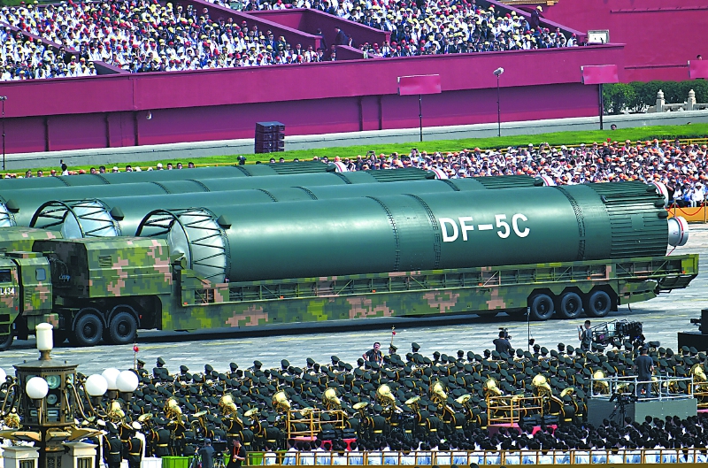 火箭军方队接受检阅。新华社记者刘大伟摄