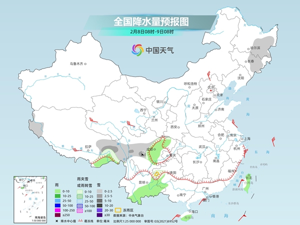2025-02-08 09:06:22 来源:央视新闻客户端 编辑:王桃今天(2月8日),全国雨雪将有所减少,主要出现在四川、贵州、云南、西藏等地,中东部大部多晴朗干燥天气。随着寒潮继续南下,降温区域也进一步南压,江南不少地方最高气温将创今冬以来新低。