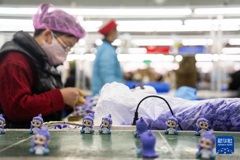 2月8日,在位于湘潭综合保税区的湖南桑尼森迪玩具制造有限公司,工人在组装“敖丙”手办。新华社记者陈思汗 摄