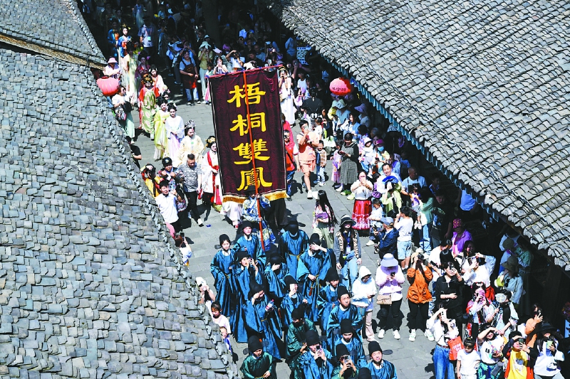 三月以来,春风化雨,百花盛开。在阆中古城,一群群身穿长袖罗裙、披着厚厚披风的游客手持团扇、面饰珍珠,轻盈地穿梭在长街小巷之中,成为一道亮丽的风景线。